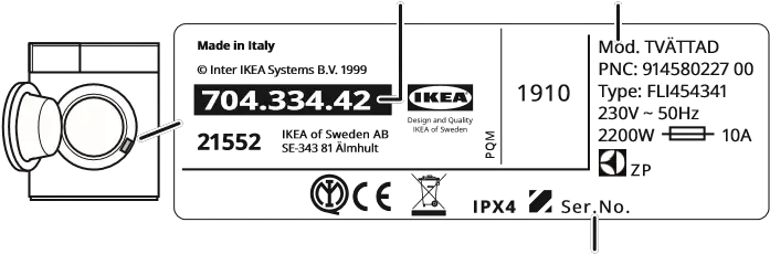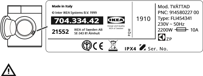 Rating plate position 4 The data in the following drawing are indicative only. Please check the rating plate of your appliance.