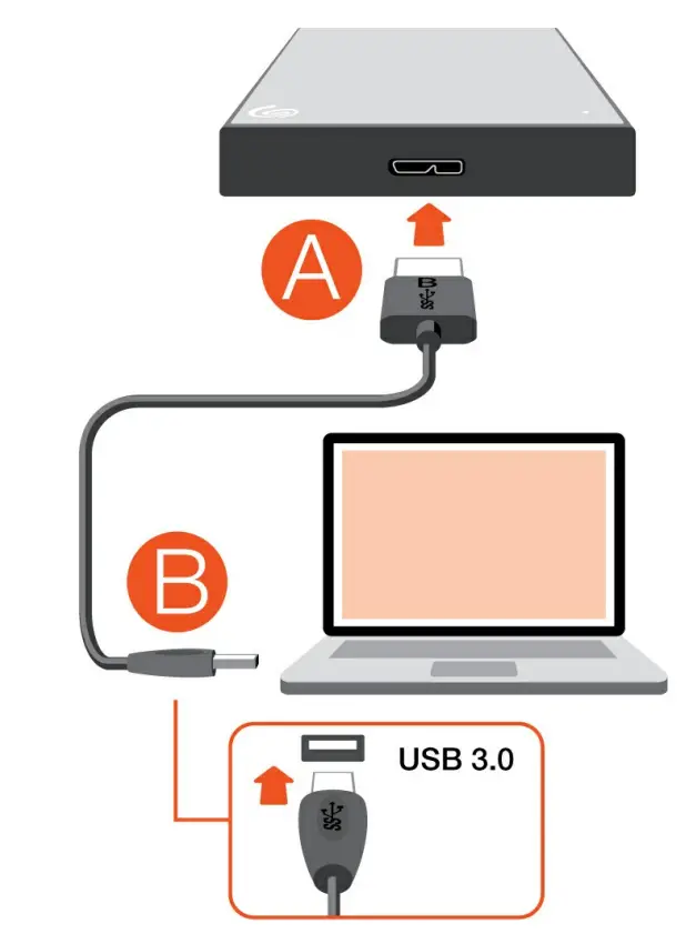 Use the included cable to connect your Seagate device to a computer with a USB Type A port. This device supports connections to computer ports that are USB 3.0 and higher.