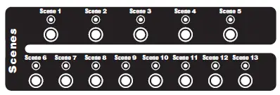Auto Scene Advance – This feature causes the controller to automatically change through your preset scenes, starting with Scene 6 and going through to Scene 13. At the end of the cycle, it goes back to Scene 6 and continues.