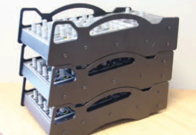 The channels are grouped in three rows of four controls, with each row corresponding to one of the XLR outputs on the rear of the controller. Each channel has two controls: