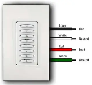 - Use wire nuts to securely connect the KPL’s white wire to the “Neutral” wire, the KPL’s black wire to the “Line” wire and the red wire to the “Load” wire (see illustration below).