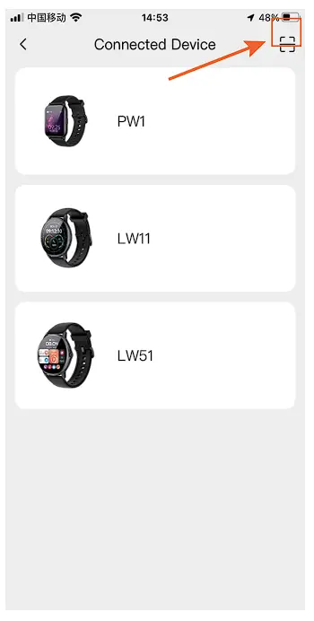 to scan the code in the upper right corner – Scan the QR code on the watch (Settings – QR code) – “Do you agree to pair with the phone?” that pops up on the watch, select ✓ – Click “Pai( in the Bluetooth pairing request that pops up on the phone – Achieve a successful connection (Bluetooth Name: LW51-***)