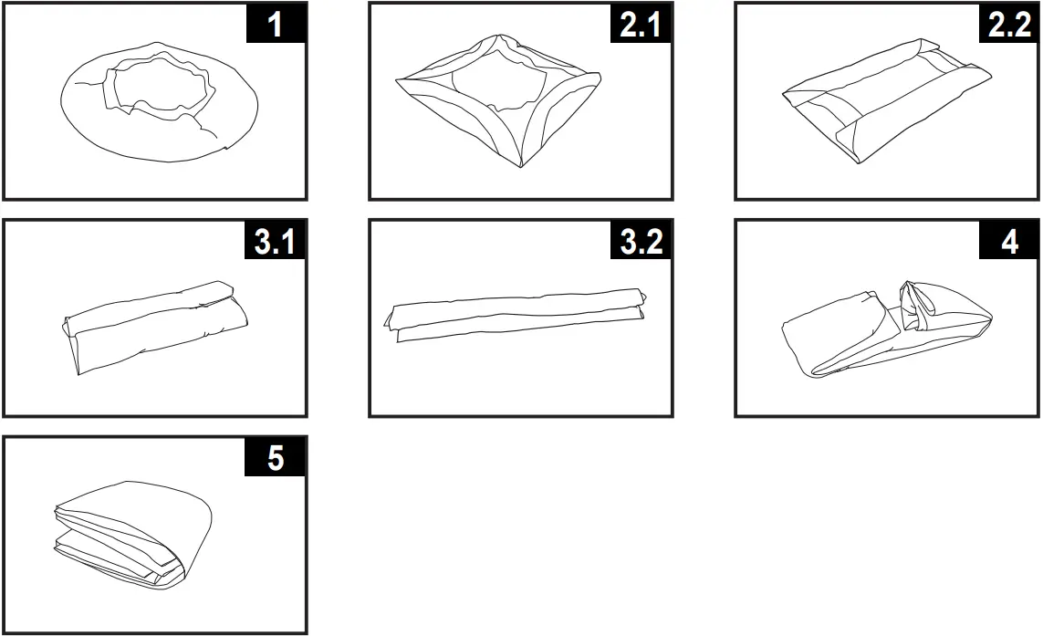 - Create a square shape. Starting at one side, fold one-sixth of liner in on itself\ twice. Do the same on the opposite side (see drawings 2.1 & 2.2).
