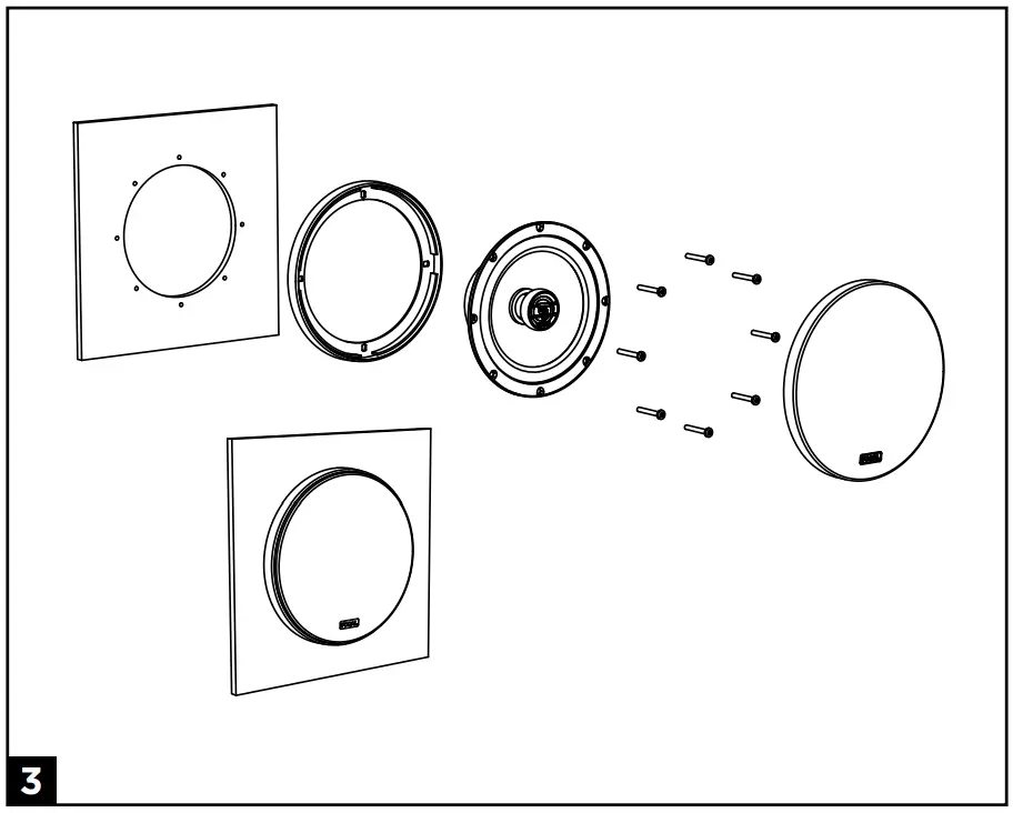 Once you have chosen the speaker driver location, attach it directly to the car door, or to a spacer using the screws provided. If the speaker driver is visible, fit the grille provided as shown in Fig. 3 to prevent any impact that could damage the woofer.
