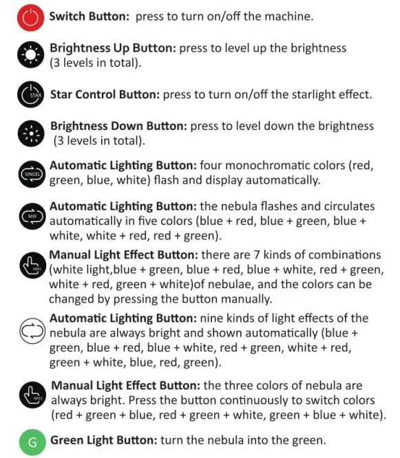 - This product is an LED night projector. Please do not shoot the LED light directly into the eyes.