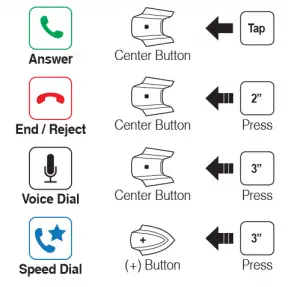 | End/Reject phone call | Press the Center Button for 2 seconds | |