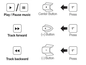 Music | Play/Pause music | Press the Center Button for 1 second |