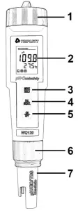 - The WQ120 automatically recognizes the solution and calibrates itself to that value (the circled number on the LCD will match the solution). Note that if the solution is more than 1 pH unit off from the L (4), M (7), or H (10) pH buffer, or if the electrode slope is low, the WQ120 will assume an error and abort the calibration (`End’ will be displayed, and the unit will return to measure mode.)