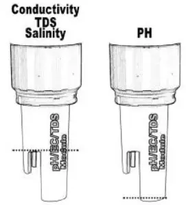 - For Conductivity, TDS or Salinity place the test sample in a sample cup with enough depth (2.5cm minimum) to cover the electrode. Stir the solution to remove any air bubbles.