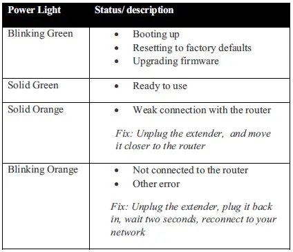 The light on the front of the range extender gives you information about power, updating and signal strength.