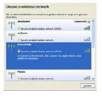 3. Select your network name. Click Connect. In the example below, the computer was connected to another wireless network named JimsRouter. The name of the correct network, BronzeEagle in this example, is selected.