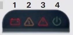 - N Switch on remote control and wait until LED 4 is permanently on in green (Note: The remote control switches itself off if it is not used after some time, LED 4 fl ashes in green four times and an acoustic signal is heard 4 times. To use the remote control again, switch it off and on again. After one hour without being used, see rear “Protecting the battery”)