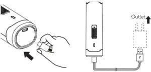 - The charging indicator will begin to flash. When the grinder is fully charged the indicator will stop flashing and stay illuminated. Outlet