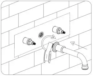 Based on the size of the body and the wall type, either secure it to the noggins or embed it into the wall at appropriate height and centre in relationship to the basin it will be servicing. Ensure the body is installed level, plumb and square. Connect the hot (left) and cold (right)water supply using applicable sealing pratices. Test for water security with the mixer in both open and shut positions.
