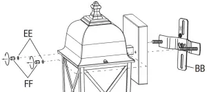 Install the Rubber Washers (EE) and secure the AA Fixture (AA) to the Cross Bar Screws (DD) by tightening Decorative Nuts