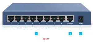 | 1 | 1, 2, 3, 4, 5, 6, 7, 8 | 8 10/100M self-adaptive RJ45 PoE ports |