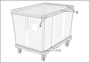 NOTE: 10 through 20 BU basket truck pocket is positioned on the right side of the center frame rod. - Fold the black hem over the frame so the grommets are aligned on the inside and outside.