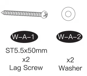 - Secure the wall plate [A] with the lag screws [W-A-1] and washers [W-A-2].