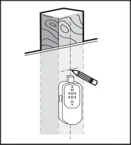 - Use a stud finder to locate wood stud and mark the edge and center location.