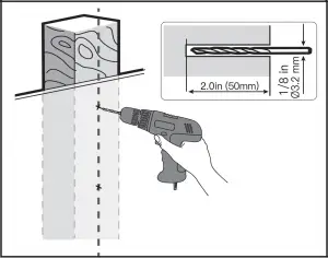 - Drill pilot holes using a 1/8 in (3.2 mm) diameter drill bit.