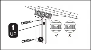 - Position the wall plate [A] at your desired height, level the wall plate [A] and mark 2 pilot hole locations.