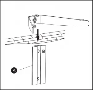 - Position the wall plate [A] at your desired height and line up the holes with your stud center line. Level the wall plate and mark 2 holes.