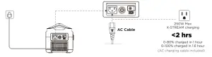 | AC Charge Input Power (Example 1) | X-STREAM Charge 250W Max /500W Max (With Extra Battery) |