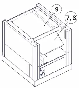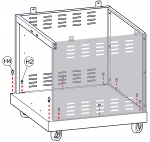 Secure the cabinet walls to the cabinet base using 8x M6 Phillips Screws (H2).