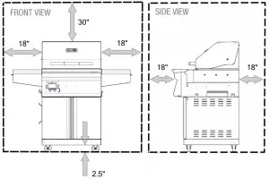 YOUR BEALE STREET GRILL MUST MAINTAIN THE SPECIFIED CLEARANCE TO COMBUSTIBLE MATERIALS WHILE OPERATING THE GRILL OR WHILE THE GRILL IS HOT!