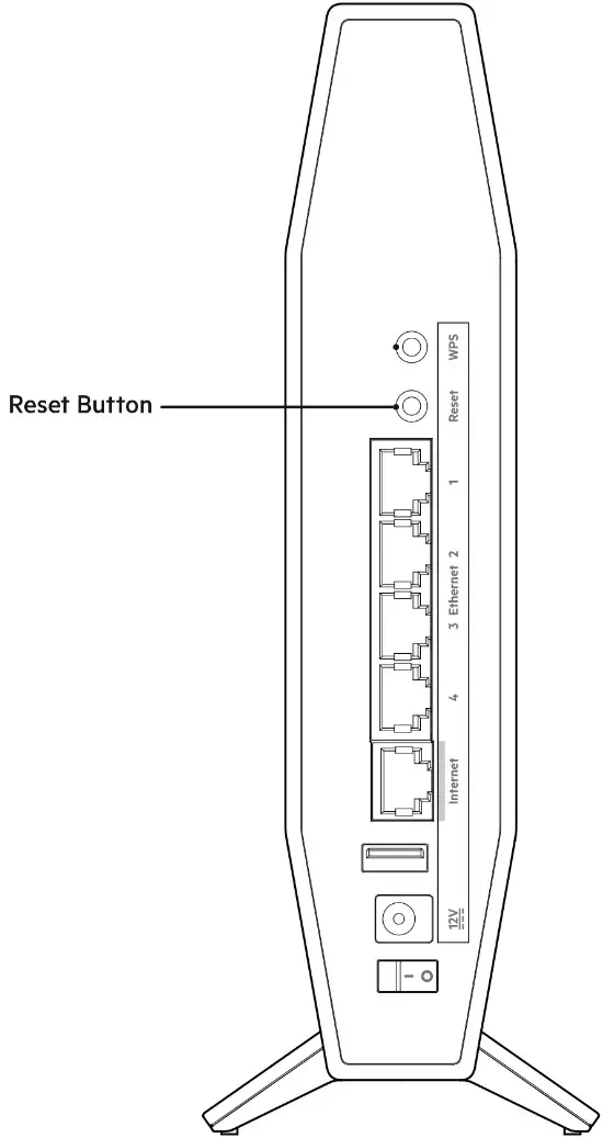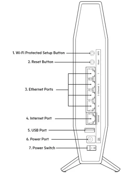 Reset button (2)—Press and hold for until the power LED starts flashing to reset the router to factory settings.
