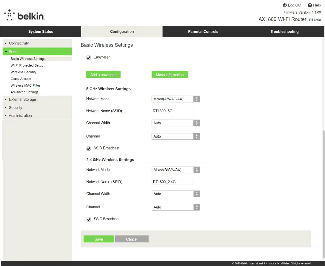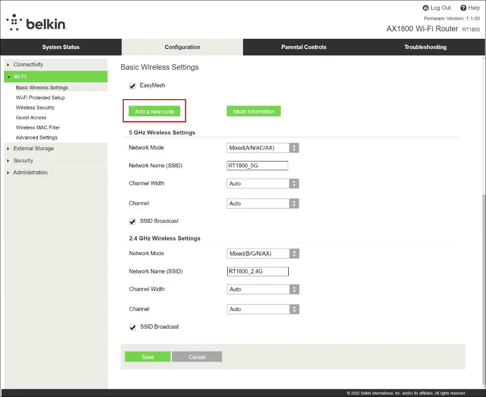 - Go to Wi-Fi > Basic Wireless Settings and click on Add a new node