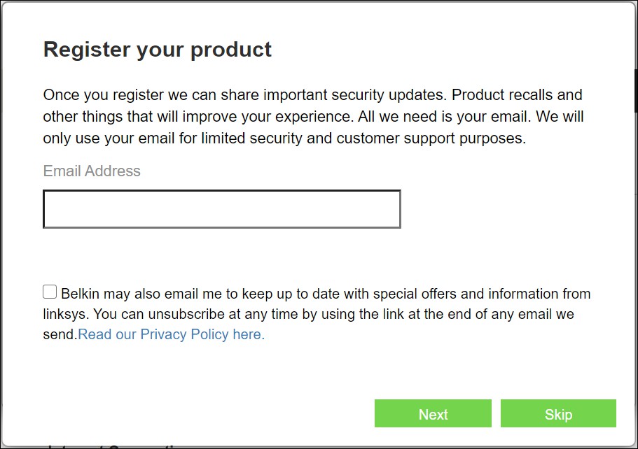 Note—If none of those options take you to the setup wizard, go to www.belkin.com/support/setupIP for more help. - Once you are finished with the setup, please be sure to register your router so we can