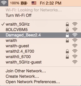 - Click the wireless network name of your Belkin RT series router (Damaged_Beez2.4 in the example).