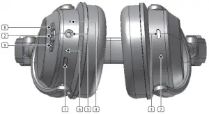 - POWER button switches the headphones on and off.