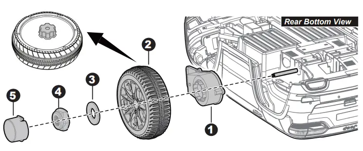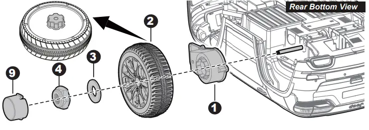 - “Snap” a hubcap to the front wheel. Repeat the above procedure to assemble the other front wheel.