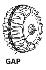 ![]() | After assembling any wheel to the axles, please check the gap between the screw thread and the collapsible (refer to below picture), if the gap is too big, please add two or three washers inside the wheel, but after tightening the nut outside the wheel, please turn the wheel by your finger to check if the wheel can run smoothly, this is very important, because if the wheel can run smoothly, it is ok, but if the nut press the wheel and the wheel can’t run smoothly, the motor will be broken easily! Then you need to decrease one or two washers to make sure the wheel can run smoothly! |