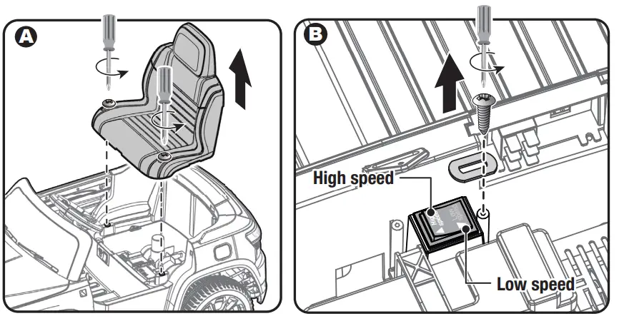 A. Use a screwdriver to loosen the two scrws on the top of the seat. Remove the seat.