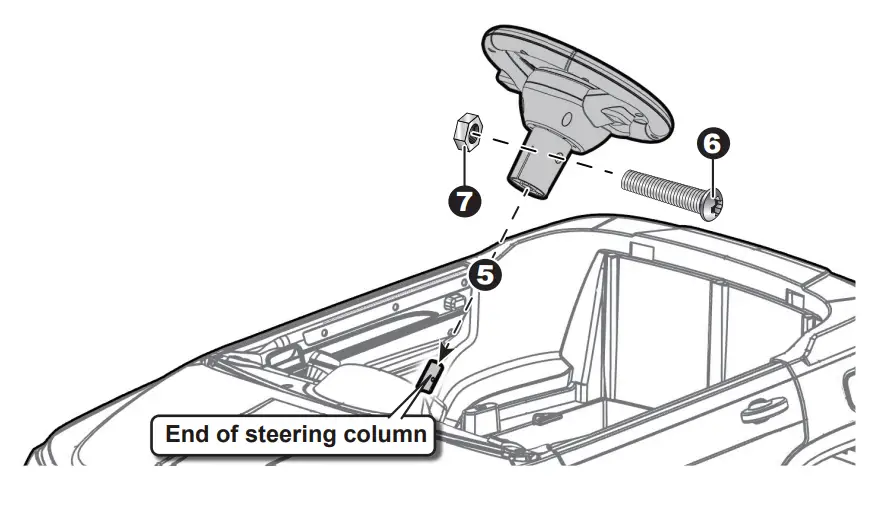 5. Place the steering wheel over the steering column, protruding from the middle of the steering wheelbase.