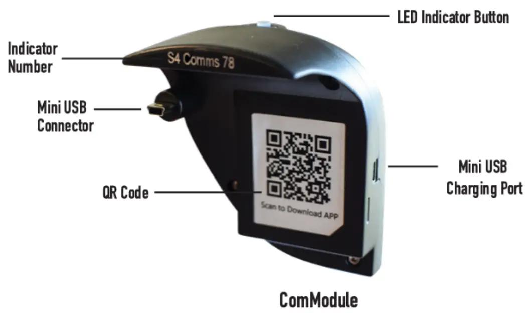 - Connect the provided Mini USB Cable into the Mini USB Charging Port on the side of the Com Module.