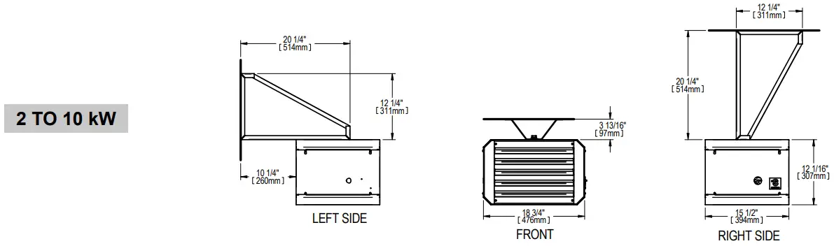For best results, the following distances shall be respected when installing these unit heaters