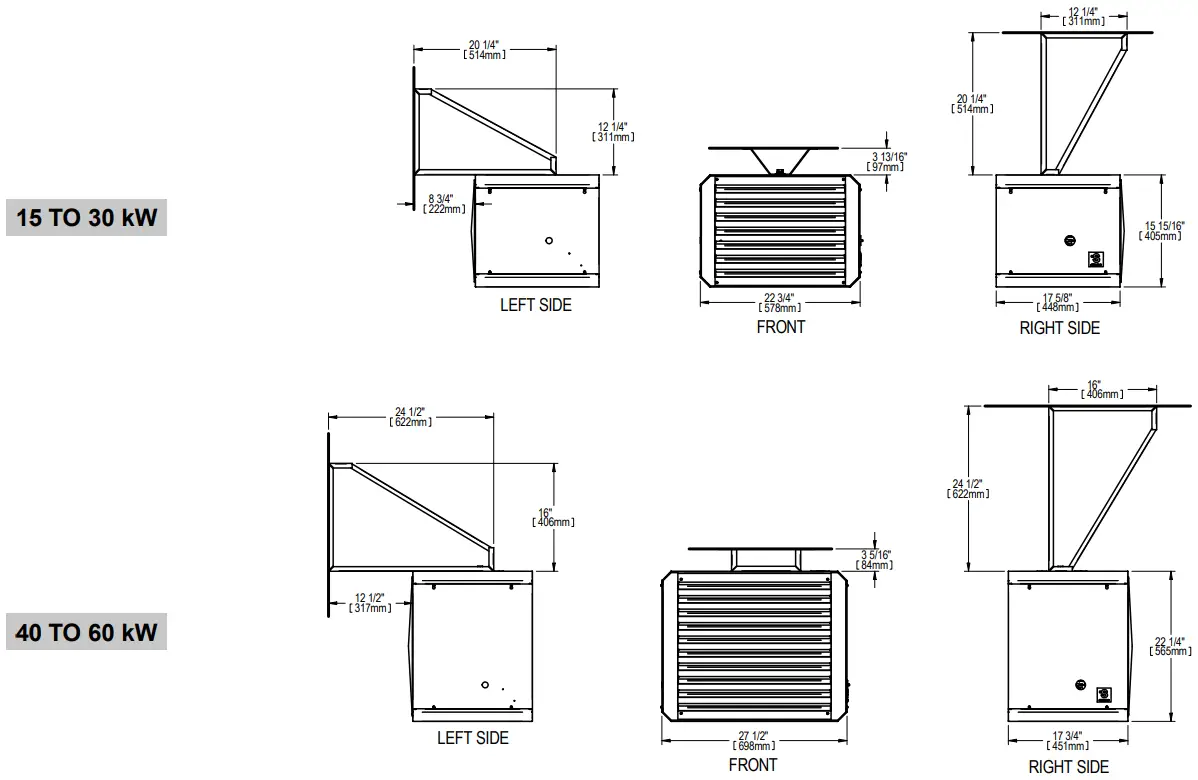 | 40-60 KW MODELS | 15 FT (4.6 M) | 6 FT (1.8 M) | 12 IN. (30 CM) |