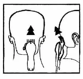 - Put the regulator of the length of the cut hair in the “1” position (the comb is pressed as tightly as possible to the body of the device)