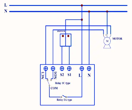 Place the in-wall switch into a wall box and connect the pins as shown in the figure.