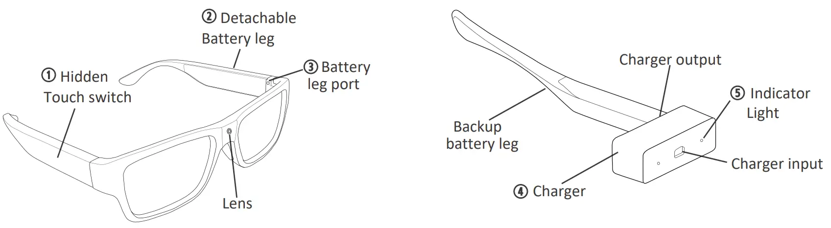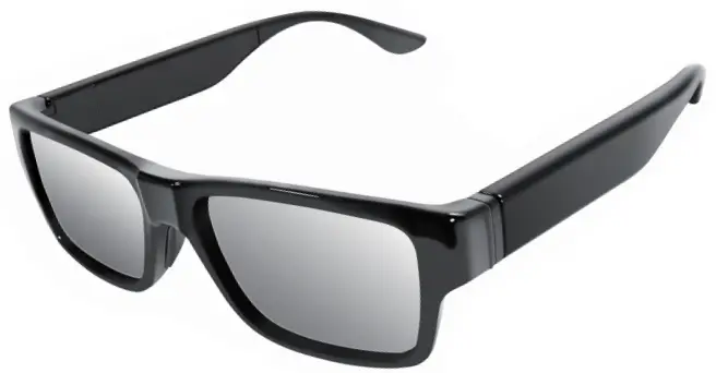 Press and hold the B button on the remote, Touch the “Touch switch” area of glasses leg for 3 seconds to turn off device, the arm will vibrate once and recorded file will be saved automatically.