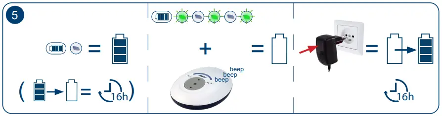 - Use only rechargeable NiMH battery listed below CORUN, Ni-MHAAAJ400 (Designation No.: Ni-MH AAA 400mAh 1,2V) Caution: Risk of explosion if battery is replaced by an incorrect type! Dispose of used batteries according to the instructions.