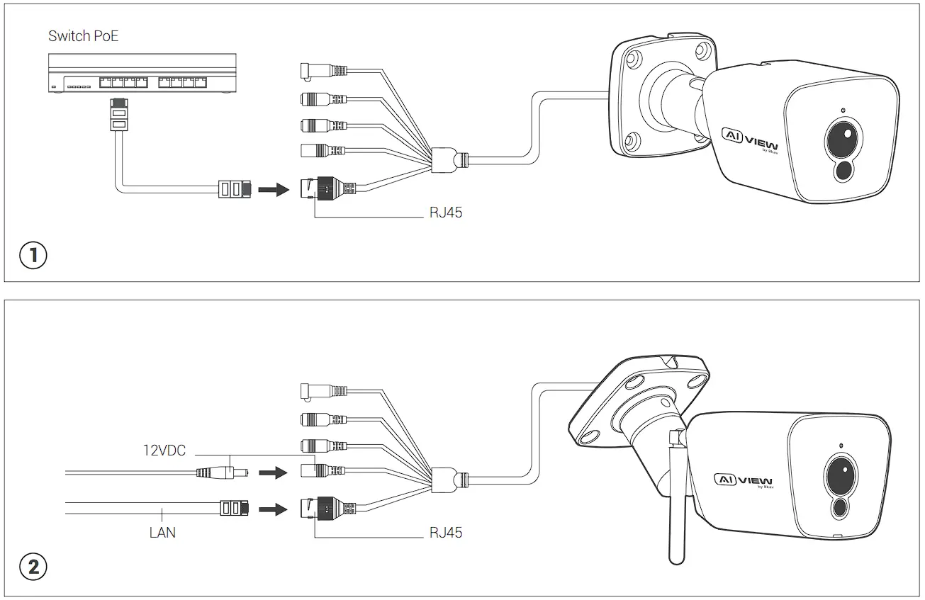 - Option 1 (Model Cl 10-0200): Use the network cable connected from the PoE switch to the waiting RJ45 port, no need to use 12VDC (figure 1 ).