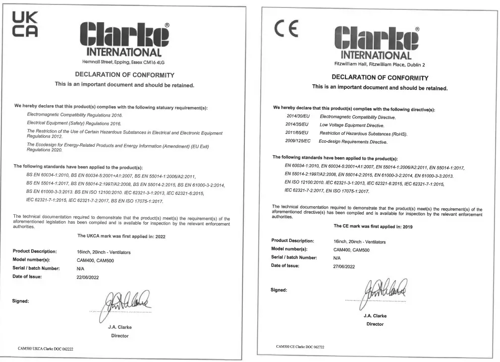 Before commencing assembly, check for damage and or shortages, etc, any damage or shortage should be reported to your Clarke dealer where the fan was purchased.