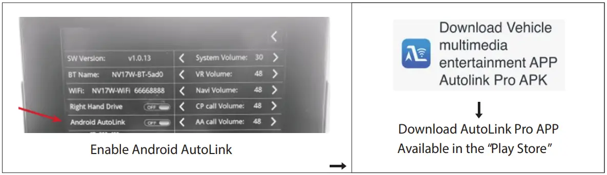 | MENU | Long press = Activate CarPlay / Android Auto | Short press = back to OEM screen |