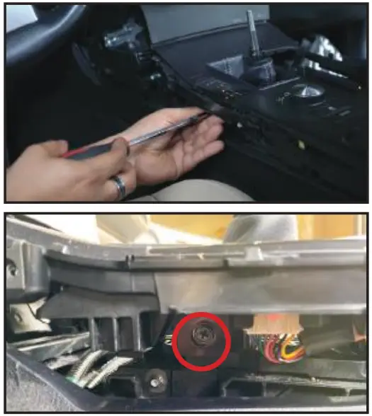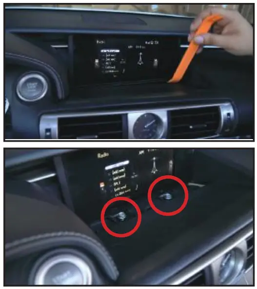 - Use a pry tool to remove the trim in front of the screen. Remove the screws