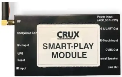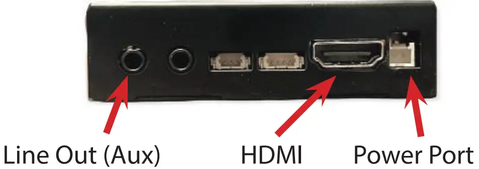 - Plug in the power plug, HDMI, mic, aux-in, and USB extension to the Smart Play module.